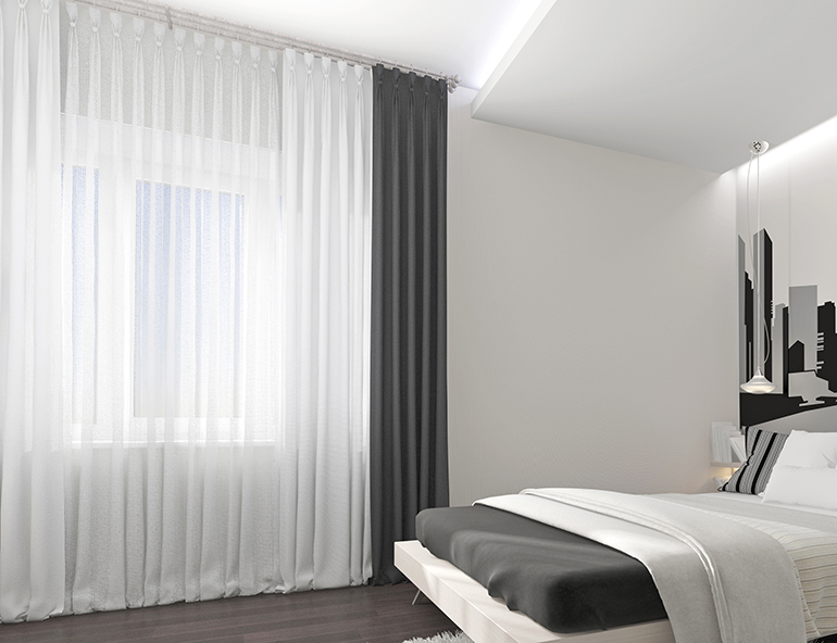3 เน้นตัวรางผ้าม่านให้เข้ากับตามความเหมาะสมในการตกแต่ง เช่น รางไม้ รางเหล็ก รางอลูมิเนียม เป็นต้น