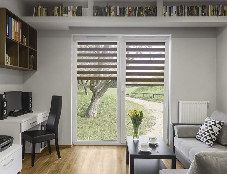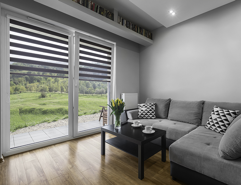 ม่านม้วนแบบเมจิกสกรีน (Magic Screen) ทึบสลับโปร่งทำมาจากผ้าโพลีเอสเตอร์ มีเนื้อผ้าที่แข็งแรง ยืดหยุ่น จุ่ดเด่นของม่านม้วนเมจิกสกรีน มีคุณสมบัติกันแสงได้มากถึง 90% และยังเพิ่มความโปร่งสบายให้กับห้อง เพิ่มความสวยงามสร้างบรรยากาศ สำหรับความแตกต่างที่ทันสมัยเรียบหรูในสไตล์โมเดิร์นไปในตัวได้อีกด้วย